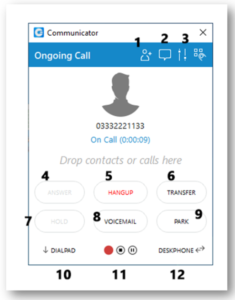 11. Call record – By default all calls are recorded. Here you can stop or pause the current recording