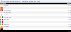 Call charges are broken down into categories and call types. You can decide exactly what data is displayed on-screen. In the example demonstrated by the following images ordinary voice calls have been selected, which are then broken down further into more specific call categories.